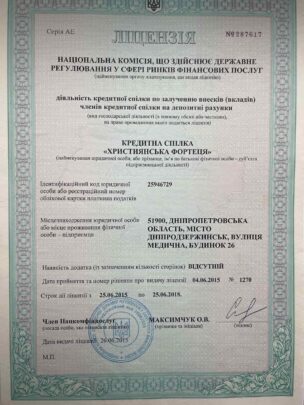 1. НАДАННЯ КОШТІВ ТА БАНКІВСЬКИХ МЕТАЛІВ У КРЕДИТ, дата видачі 03.2024, термін дії – необмежений;